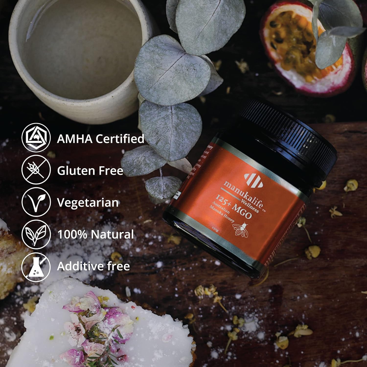 مانوكا لايف +125 MGO – عسل مانوكا نقي وخام 100% من غرب أستراليا، بدرجة طبية وصيدلانية (250 جم)