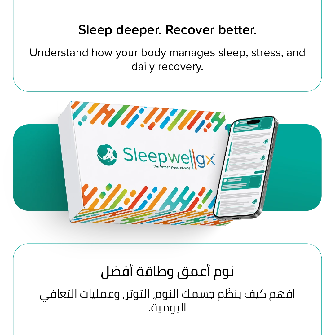 مع Sleepwellgx® ستحصل على فهم واضح لكيف تؤثر جيناتك على مدة نومك، وتوقيته، وحتى استجابتك لبعض الأطعمة والمكملات التي قد تساعدك على نوم أفضل.