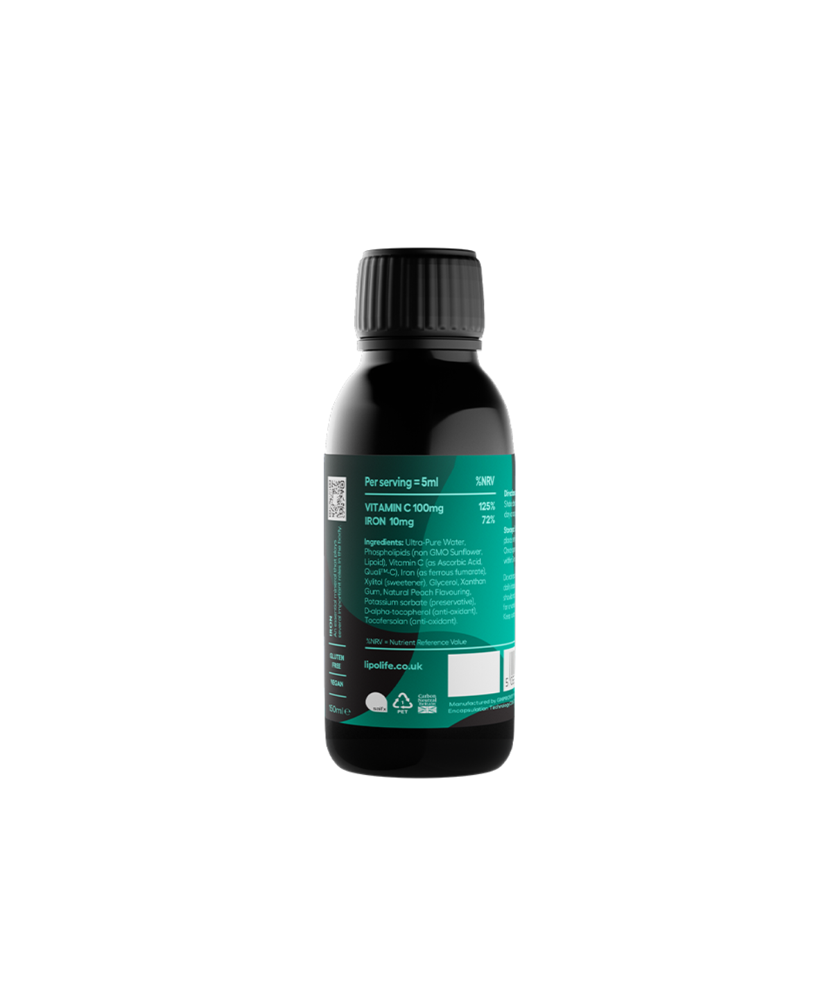 Lipolife LLI1 Iron is a liposomal iron supplement with a refreshing peach flavor, designed to enhance iron absorption while minimizing common gastrointestinal side effects. Iron is crucial for transporting oxygen throughout the body, supporting muscle function, and participating in essential metabolic processes. This supplement helps maintain healthy iron levels, which are vital for energy production, cognitive function, and overall well-being. Lipolife LLI1 offers a gentle yet effective way to boost your iron intake, reducing the risk of iron deficiency anemia and its associated symptoms, such as fatigue and weakness.