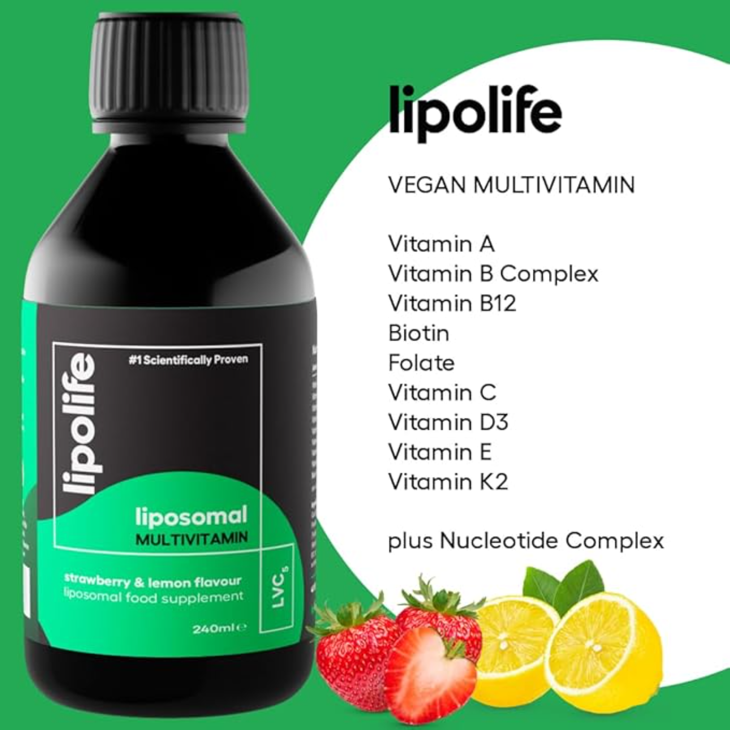 Lipolife Strawberry & Lemon Liposomal Multivitamin (LVC5) offers a comprehensive blend of essential nutrients to complement your diet and support your overall health.