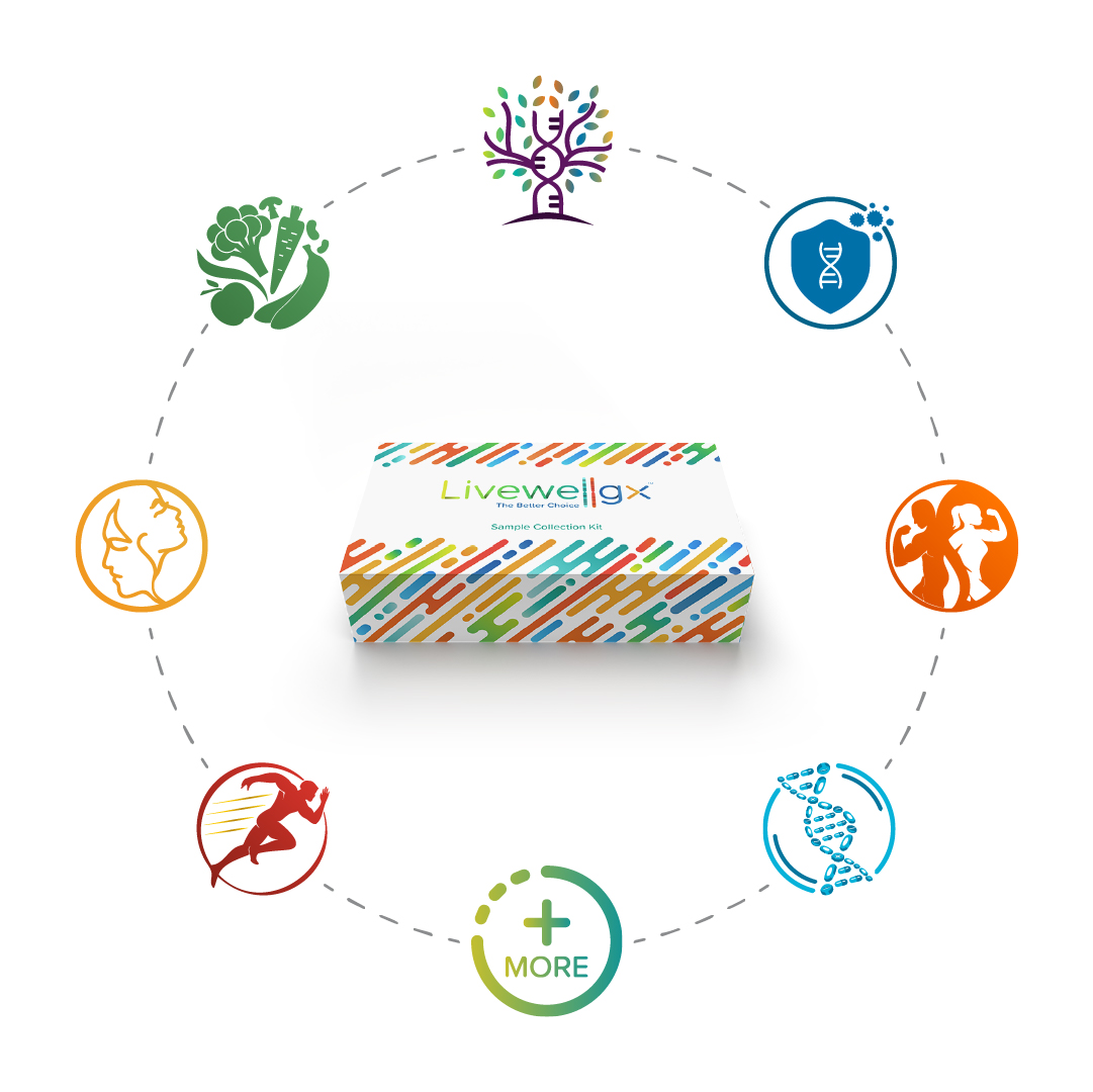 Your DNA holds the blueprint for everything from the right choices to make in your diet, your nutrition and so much more. This package offers a super limited time off on the complete Livewellgx range of 6 at-home DNA tests for fitness, diet & nutrition, skin & hair, medication response, immune response and a FREE ancestry test. Discover full-body. optimization and grab this limited time offer to discover your own DNA secrets.  (Consultation Sold Seperately)